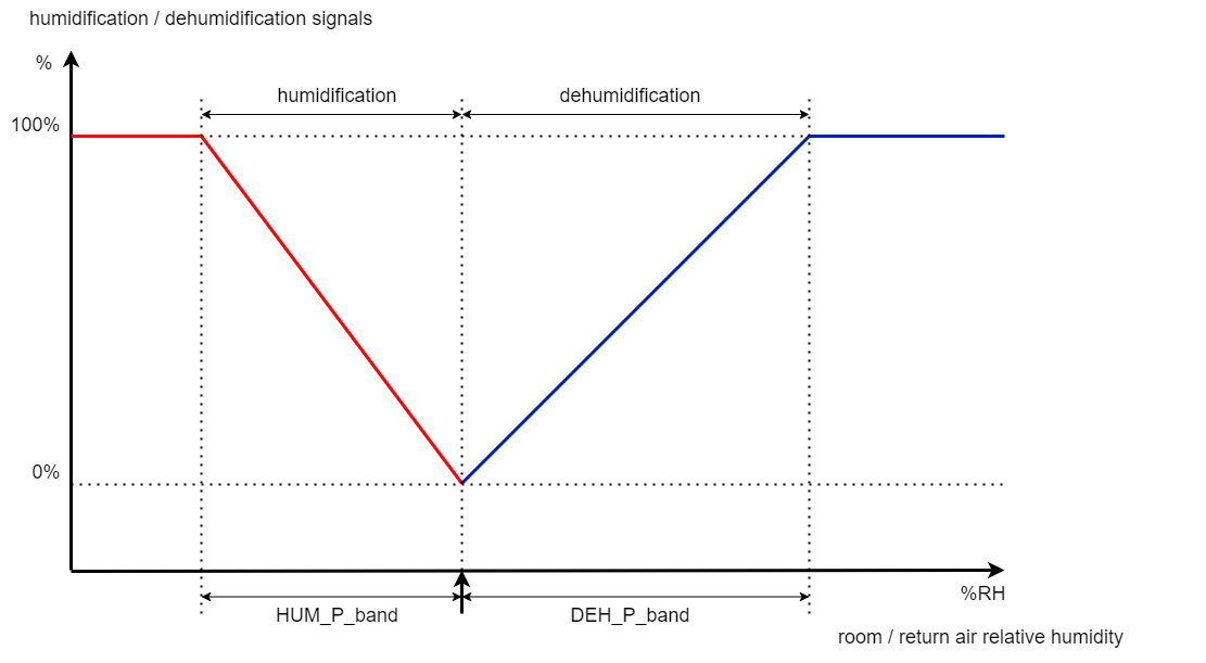 The slave PI-controller has a proportional band, which is the summation of the P-bands, respectively defined by the parameters HUM_P_band and DEH_P_band.