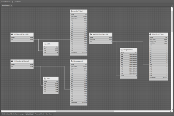 WARNING! This mechanism works only if the value of the connected slot (priority input) to the NV component will be changed from the BACnet protocol level. If the value of different priority input will be changed from the BACnet protocol level, the action “Link back forward ” will not be executed, and the output value will be chosen from object priority array.