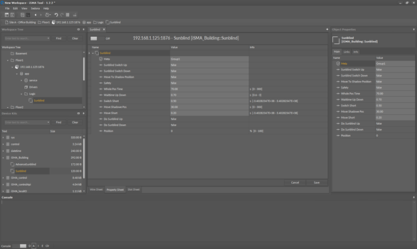 The Sunblind component has been created to allow the control of the sunblind with one function block. It best suits simple projects, where only simple up/down manual or BMS control is required. There is a dedicated slot for monitoring the current position of the sunblind.