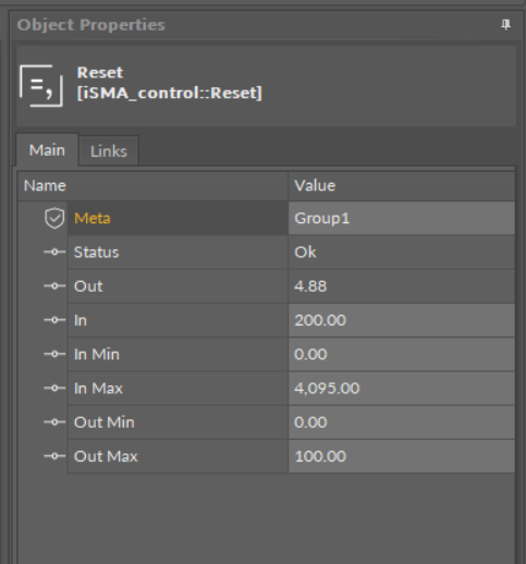 The Reset component performs a linear reset on the In value.