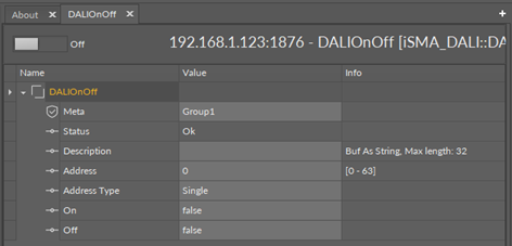 - Send Off: sends the Switch Off command to DALI device/devices.