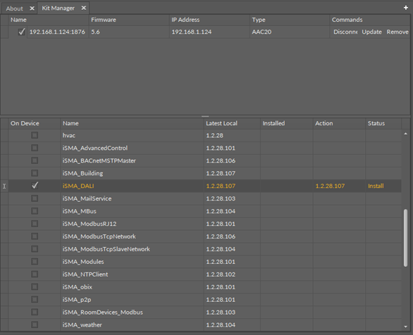 Step 1: Open the iSMA Tool, right-click on the device and choose the Kit Manager;