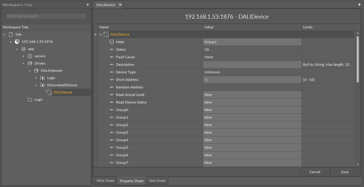 The DALIDevice is responsible for servicing physical device connected to DALI network. Each device is represented by a DALI device component and has a unique DALI address (0 to 63).