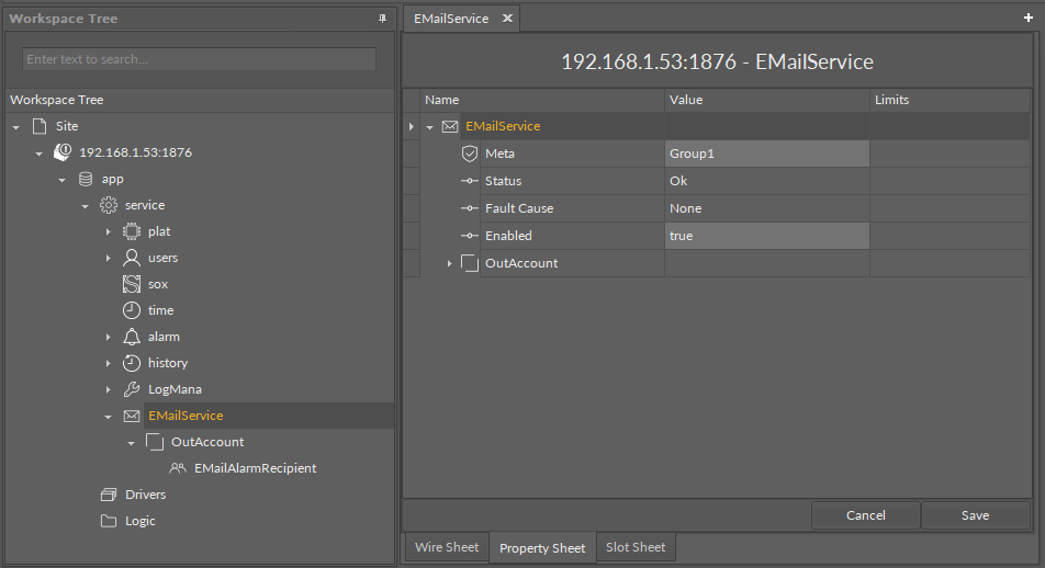 The EMailService component is the main component, enabling functioning of the e-mail service.