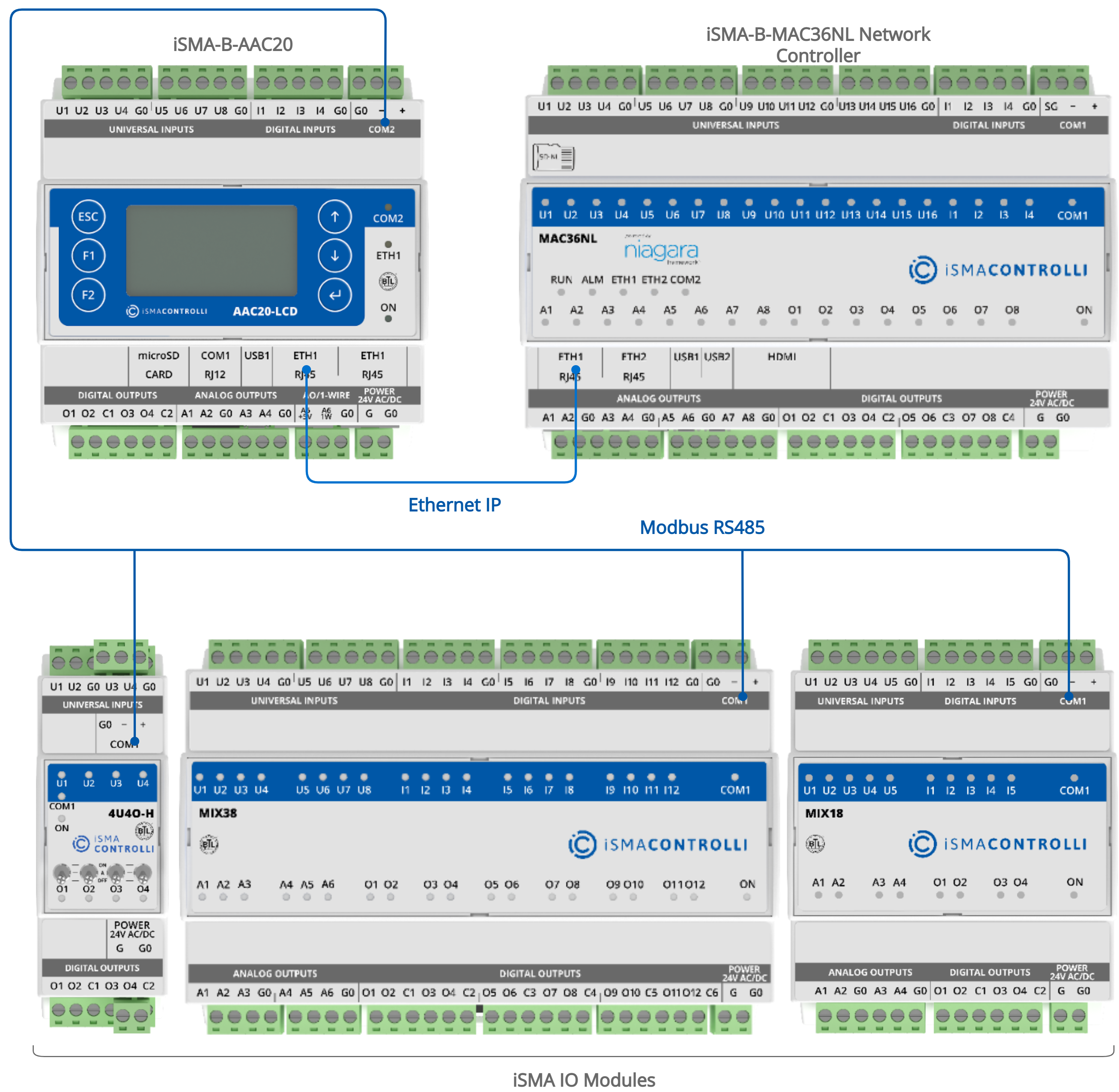Controller Modbus register table (see the iSMA-B-AAC20 Modbus table chapter).