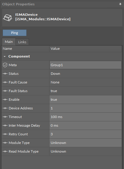 The iSMADevice is a component designed to cooperate with iSMA devices hardware. This component has built-in parameters to work with all iSMA devices in the ModbusAsyncNetwork.