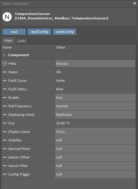 Read Config: reads configuration parameters from the panel (Display Name, Visibility, Decimal Point, Sensor Offset, Sensor Filter);