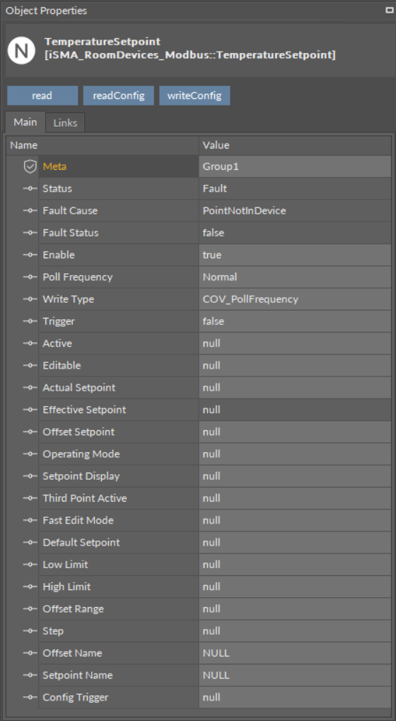 - Write Type: defines a method of writing values (COV, COV_PollFrequency, PollFrequency, COV_LinkSet);