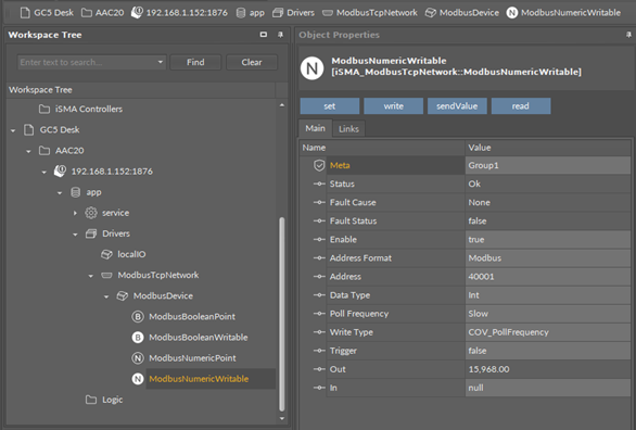 The ModbusNumericWritable is a component, which is responsible for sending and reading numeric values from the device.