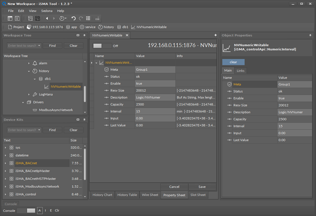 Interval history extension is used to collect data at specified time intervals. When you choose interval option in the NV component, a history interval will be created under the history service and a link to the NV point Out slot will be created. For configuration and settings, please refer to historical components under the history service.