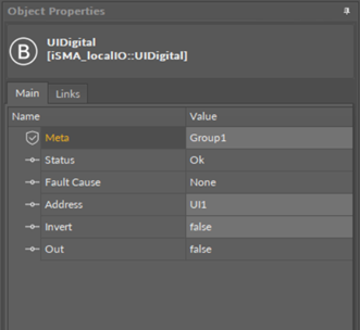 - Invert: a Boolean slot allowing to invert the value read from the universal input of the device;