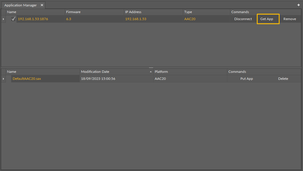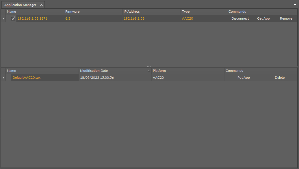 The Application Manager is a tool that allows to manage applications of a specific device and the applications saved locally in the iC Tool.