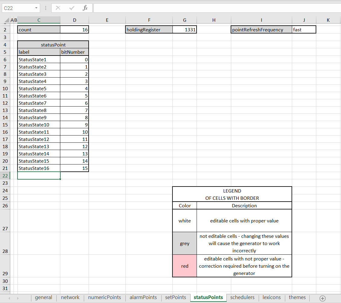 - pointRefreshFrequency: sets a frequency of refreshing points values (frequencies are configured in the network sheet).