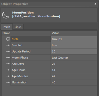 The MoonPosition component calculates a current Moon’s position based on the current time. The Internet connection is not required for proper work.