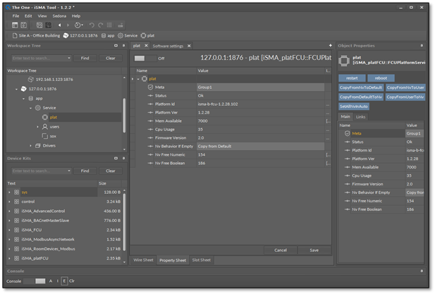 The Service component has been created to manage services. This component is a parent component for components, which do not take a direct part in the operation of the application (plat, users). The Service component has to be placed under the app component.