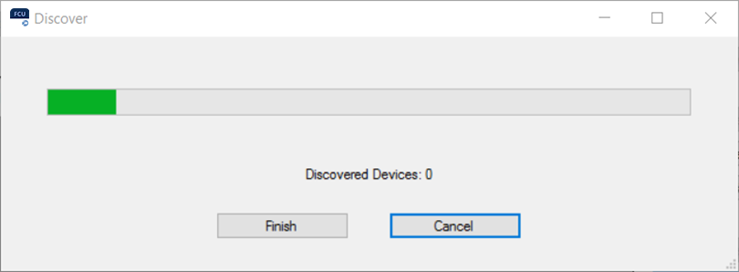 For the Modbus protocol, regardless whether devices are connected directly to the Modbus RTU network or discovered with the Modbus TCP gateway, it is required to set up the Modbus addresses range. The FCU Updater starts searching for the first device with the given address in the Start Address field until reaching the last device with the address specified in the Stop Address field. The time spent for discovering varies based on the devices range and networks baud rate. To reduce the discovering time, it is recommended to adjust the range accordingly.
