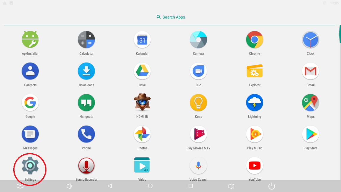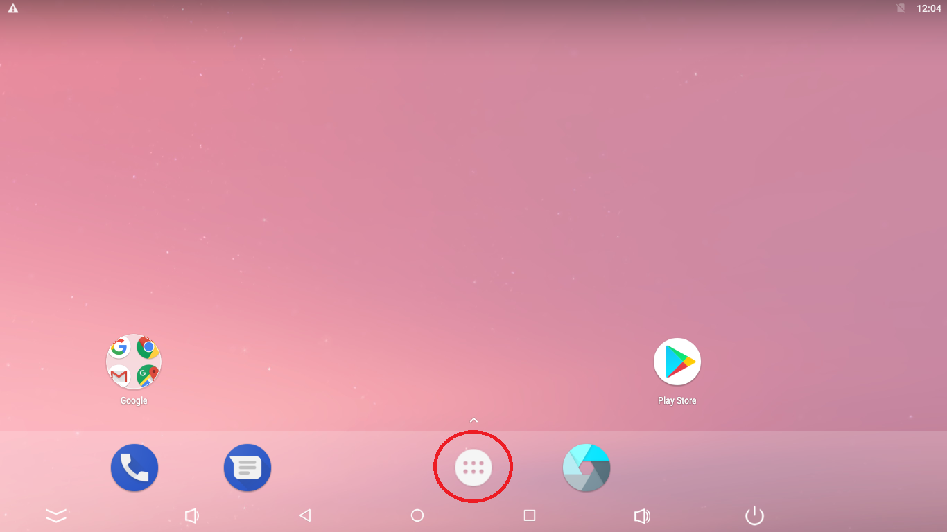 Step 1: Go to the main menu of the Android panel PC–a round, white icon with dots at the bottom center of the screen: