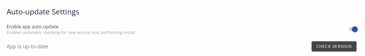 - Enable app auto update: (disabled by default) switches the auto update function on and off;