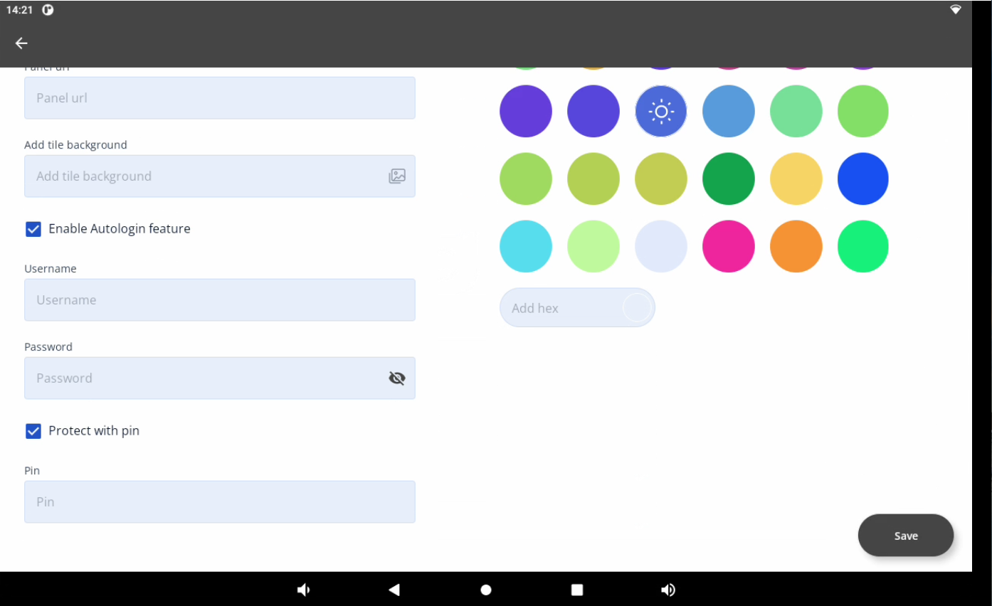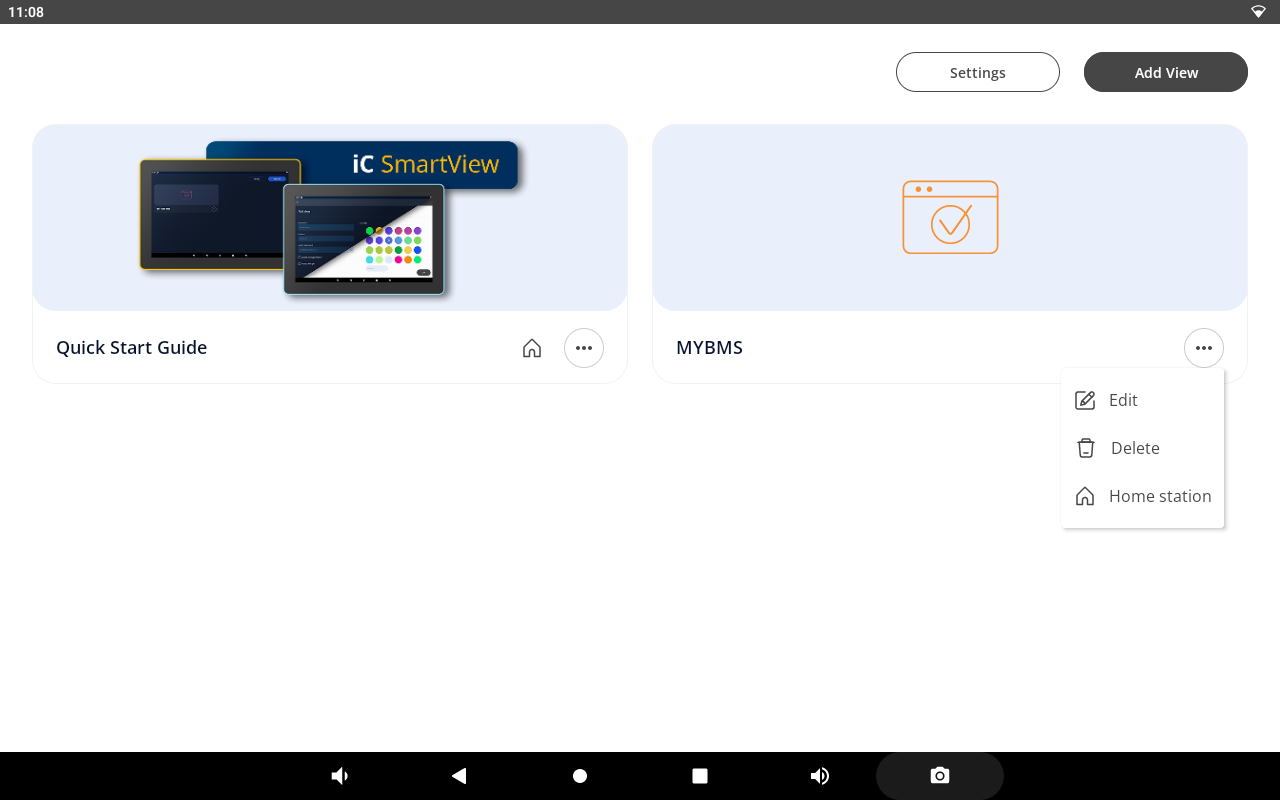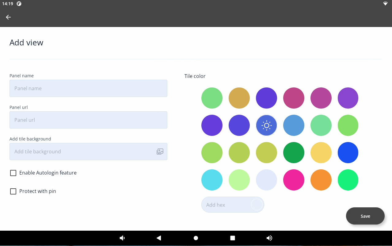 Home station: can be chosen only for one tile only; the chosen view will be automatically logged in after restarting or turning on the panel (Disable home station option appears for the selected home station). Additionally, if the app is left inactive in the home screen for more than 5 minutes, the home station will log in automatically after 5 minutes.