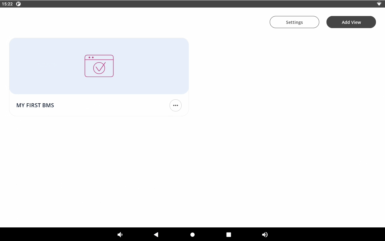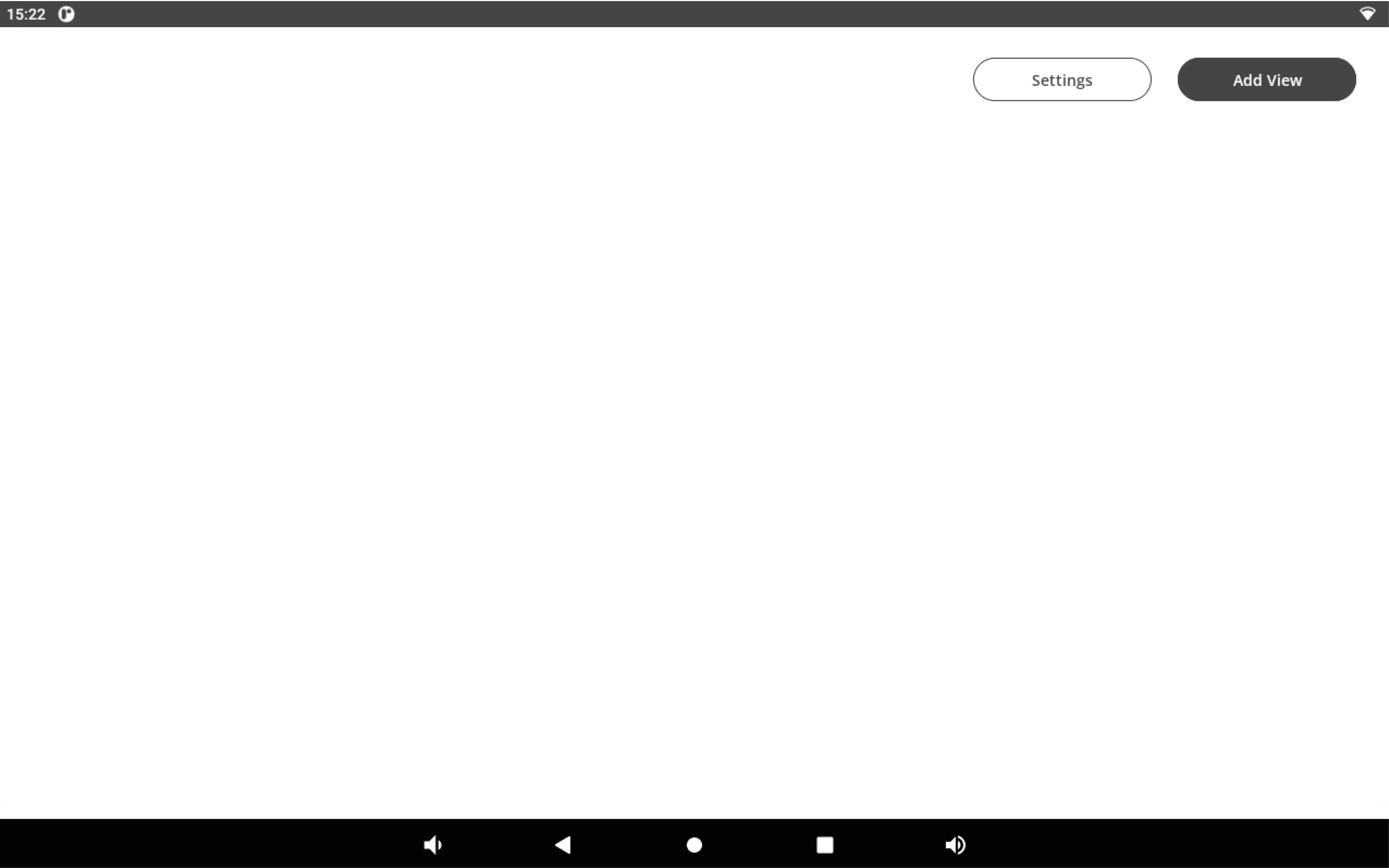 When the application is first launched, the main screen, except for quick-start, does not contain any added visualization, or controller. When the application is launched, the home screen is displayed, allowing to add one or more Niagara stations, or other web services. To add a new view, tap the Add View button: