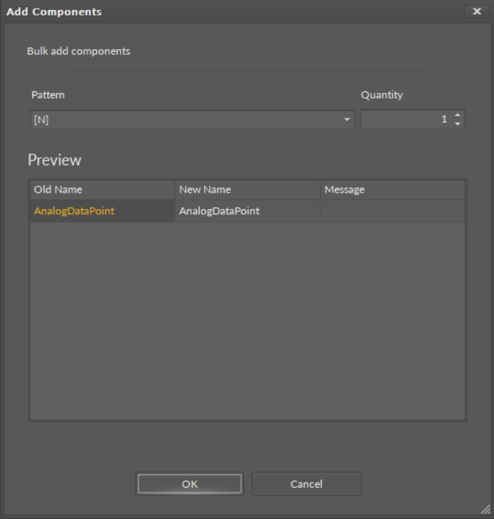 After dropping a single component in the specific place in the Workspace Tree, a dialog window appears, allowing to name a newly created component. After confirmation of the name, the component is added to the device, and the tree is refreshed.