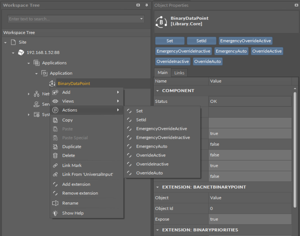 - Actions Section: buttons available in the bar above tabs, allowing a simple execution of actions on selected component. These are the same actions which are listed in the component’s context menu under the Actions option.