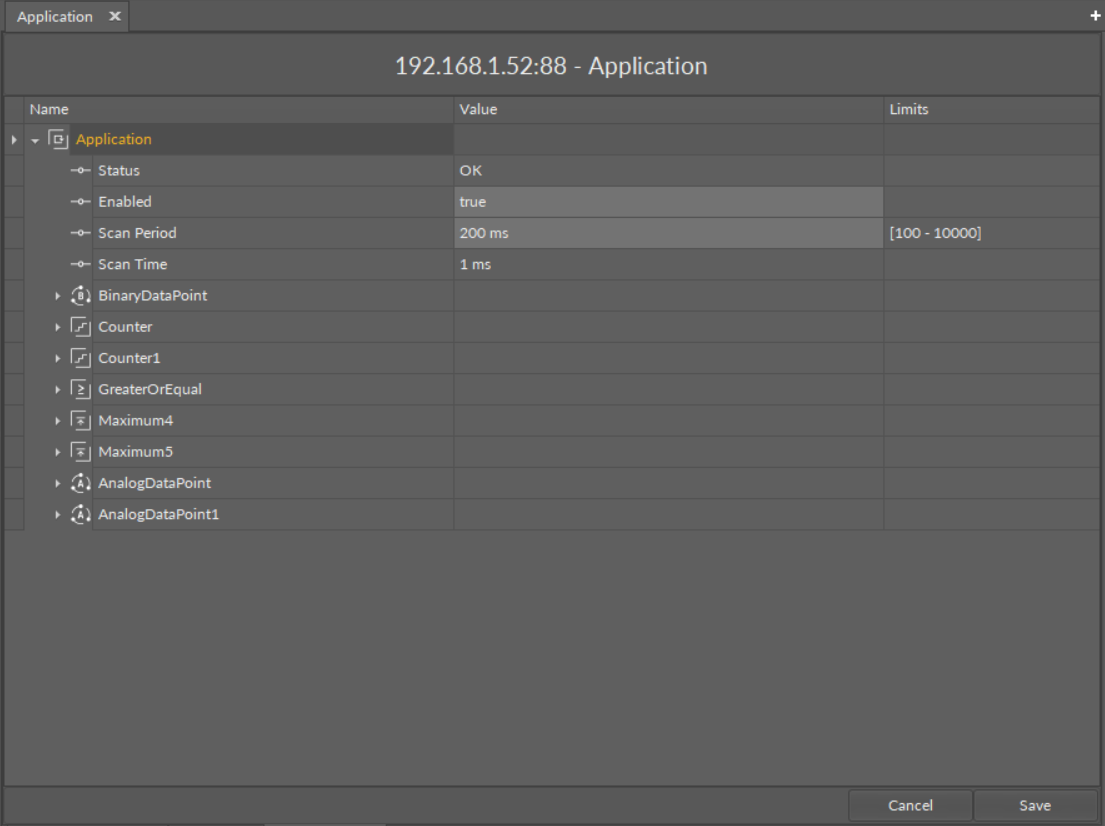 The Limits column shows the range of values available for component. If the range of values is unlimited, the field is empty.