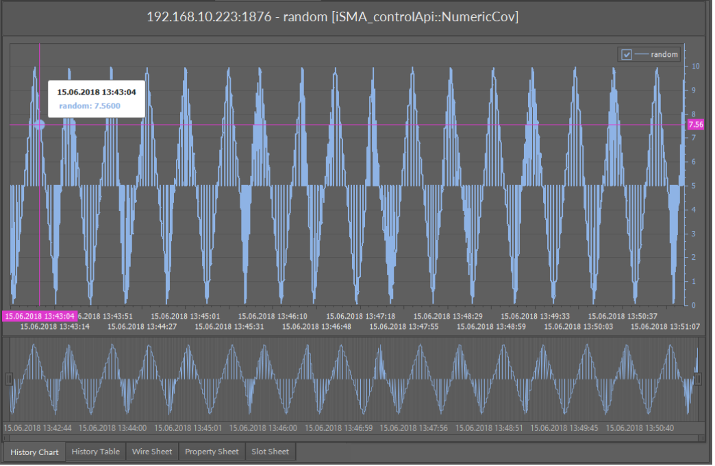 The iC Tool allows to perform an analysis of historical trends by using two views, History Chart and History Table. The first view allows to work with a single trend or many trends on a graph versus time. The second view is a table of registered samples of one of the processes.