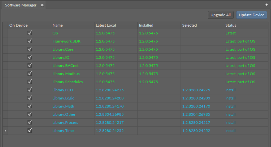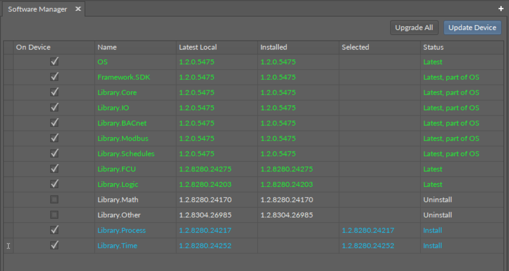 - once selection of all libraries to be installed or uninstalled on the device is complete, hit the Update Device command.