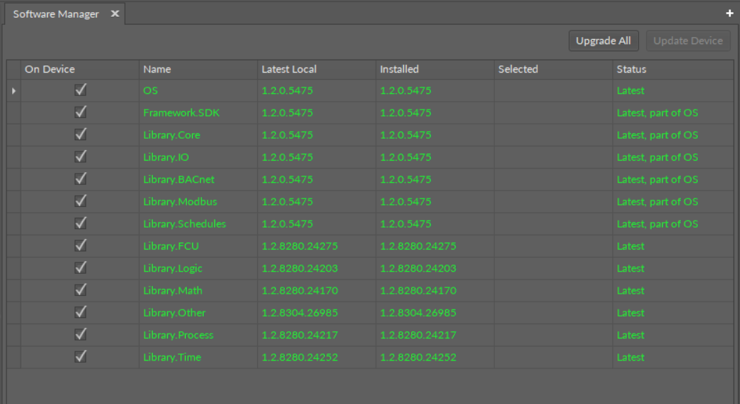 The Software Manager is a tool allowing the management of the device operating system and its libraries. The Software Manager allows installing, uninstalling, and changing versions of the OS and libraries.