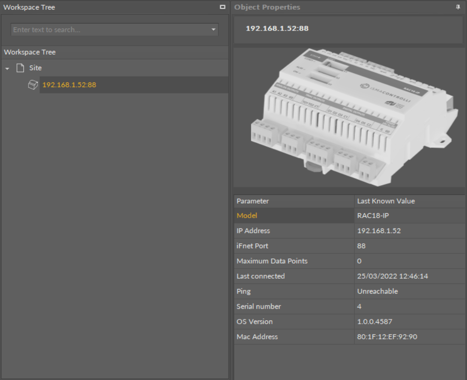 If the device gets disconnected by mistake, while working with it, the program will detect it automatically and inform the user showing a “Device disconnected” text in the upper part of the view and folding the device tree on Workspace Tree.