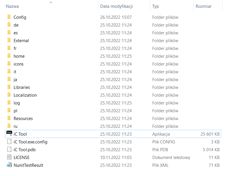 - Config: a folder containing a record of user’s individual settings regarding windows location and other iC Tool work settings, such as a language chosen for the iC Tool interface;