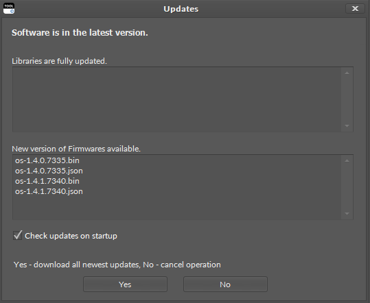 There is also a manual way of checking software updates availability. In order to do so, initiate the menu Check updates, available in upper Help menu. After initiating this option, the iC Tool will check the availability of new versions and display an appropriate notification. If a new update is available, a pop-up window, described above, will appear.