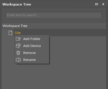 A Workspace Tree, also known as a project tree, is a window designed to work with devices. Thanks to a hierarchical structure of the tree, it is easy to switch between the devices and their components. It is also a place to add/remove the devices and to manage components.
