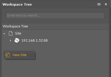- New Site: creating a new project independent of the others (right-click on empty space in the Workspace Tree);