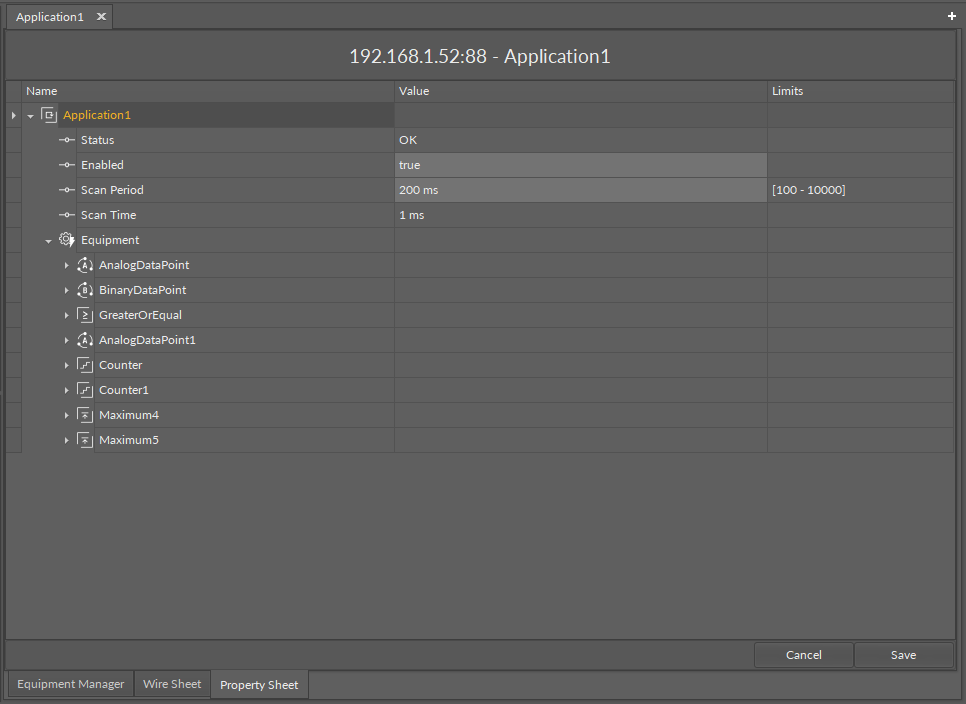 A Property Sheet is a tabular view listing all of the selected component’s slots, its inferior components, and their slots. The Property Sheet provides information about slots’ names, their current values, units, and ranges .