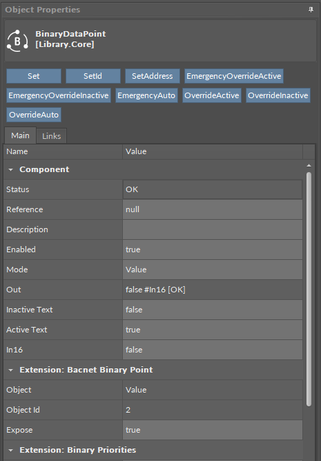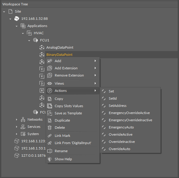 Pressing the actions button available in the Object Properties window after selecting the required component.
