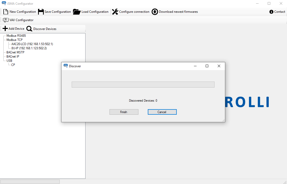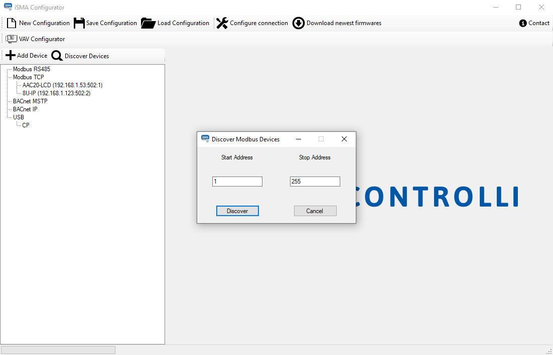 In its standard version, the Modbus protocol is not equipped with discovery function, but in case of iSMA Devices the discovery process can be performed using the iSMA Configurator software.