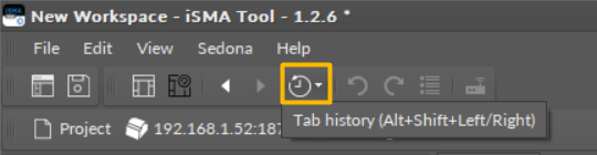 While working on application, the user switches between views to present objects being worked on in a most convenient way. Double clicking on a component in the Workspace Tree opens a corresponding default view. As a convenience matter, the iSMA Tool offers a view navigation history to allow the user to return to previously opened tabs.