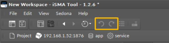 In case of an unintended action (for example, a component deleted by mistake, erroneously added link, randomly moved components), the iSMA Tool offers undo/redo actions.