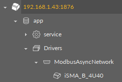 After reconnecting with the controller, open "App / Drivers". From the "iSMA_ModbusAsyncNetwork" in the "Device Kits" window add "ModbusAsyncNetwork" to "Drivers".