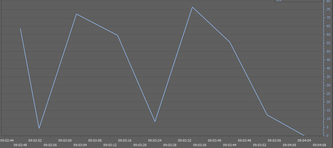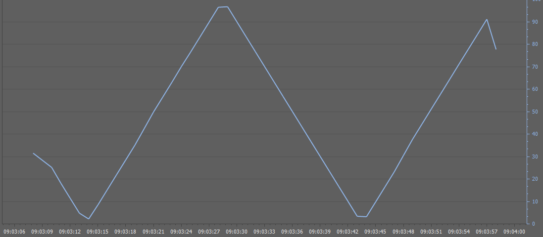 Historical data of the 'Ramp' component operating in the 'RateFolder' component with the 'App Cycles To Skip' slot set to extend the cycle to 1 minute