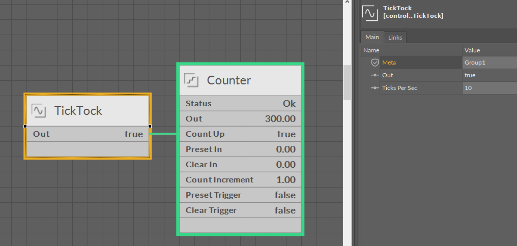 Figure 2. Configuration of the example logic based on the 'TickTock' and 'Counter' components