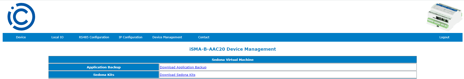 Picture 2. Tabs in “Device Management” for downloading backups from iSMA-B-AAC20.