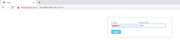 Enter the device's IP address in the browser. The login page will appear. The default login is "platform" and the password is "1000".