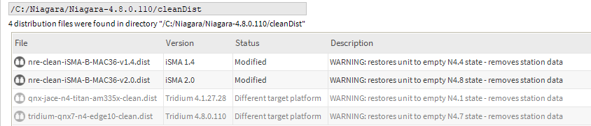 Figure 1. ‘dist’ files list for cleaning controllers in Niagara