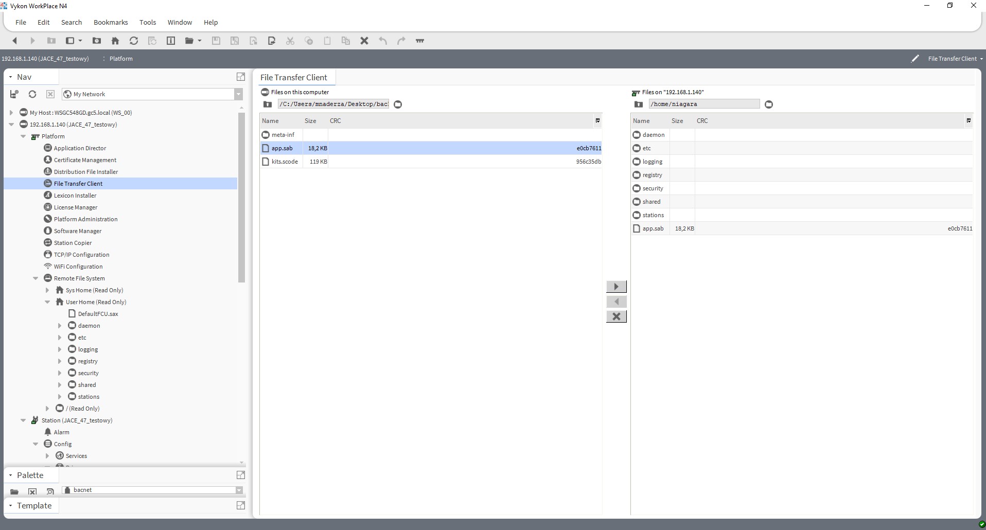 Figure 4. Moving the 'app.sab' file to the Niagara station's files