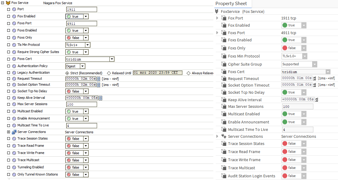 4. In both Niagara versions, the ‘FoxService’ has to be configured identically.