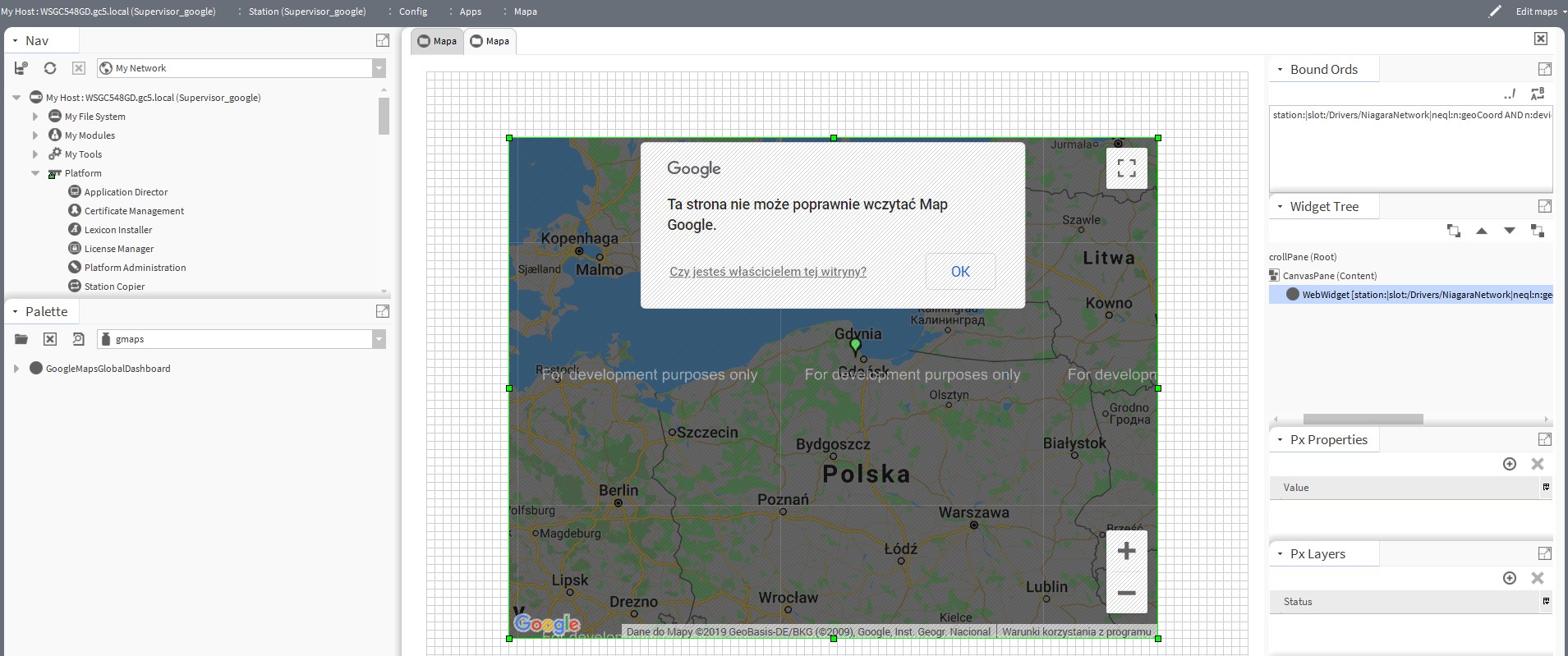 - then, create a new Px view and place GoogleMapsGlobalDashboard on it.
