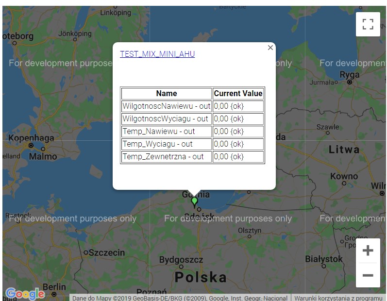 - After refreshing the view, a pin should appear on the map; when you hover over it, a window will appear with the name of the station and the imported points.